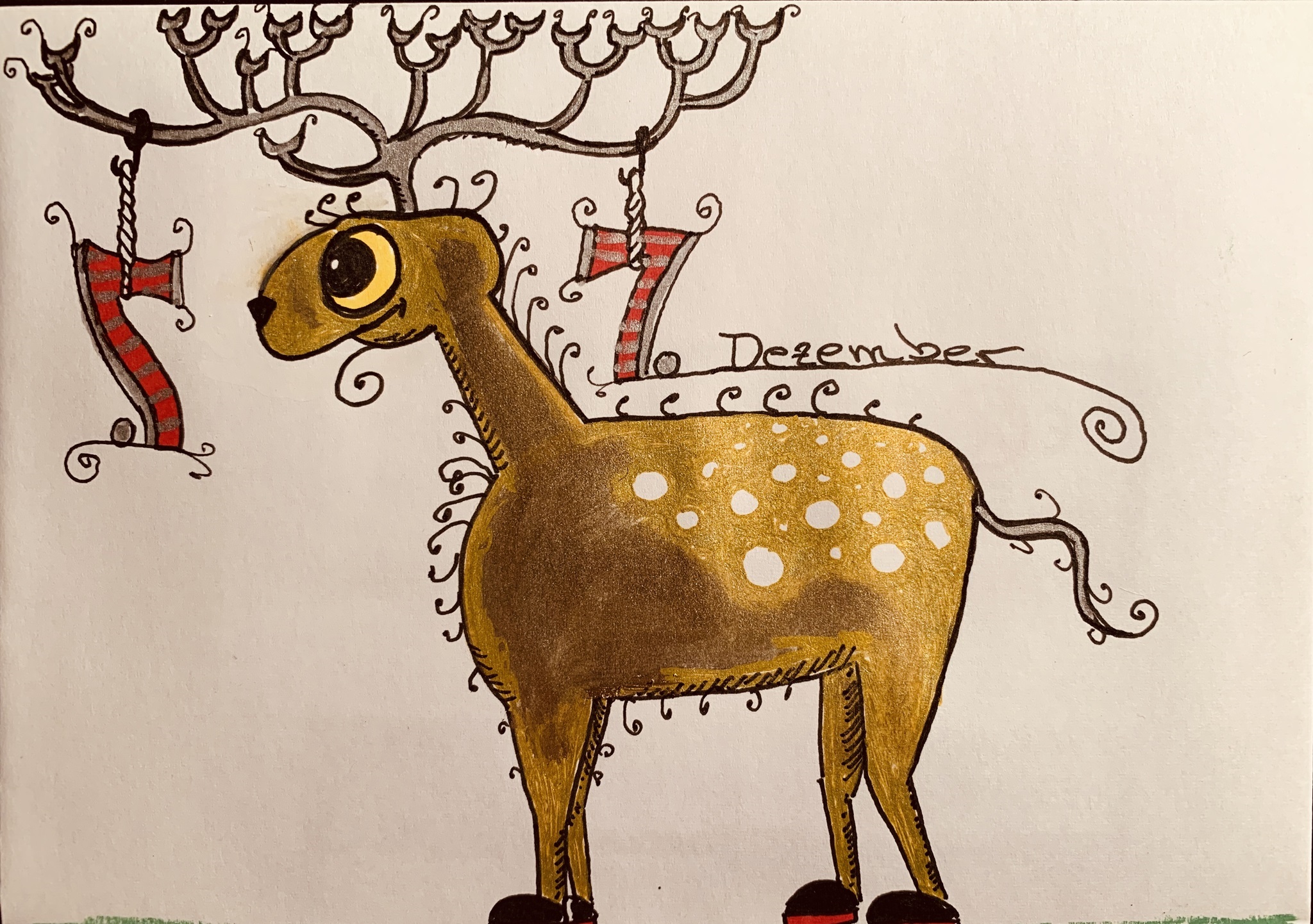"Im Jahr 2018 wollte ich für meinen Sohn zum Krampus / Nikolo eine Karte malen, die ihn nicht verängstigen würden. Da entstand dann das erste Bild. Am nächsten Tag fragte er mich wieder, ob es ein neues Bild gäbe. Und da wurde die Idee geboren, einen selbst gemachten Adventskalender zu machen.